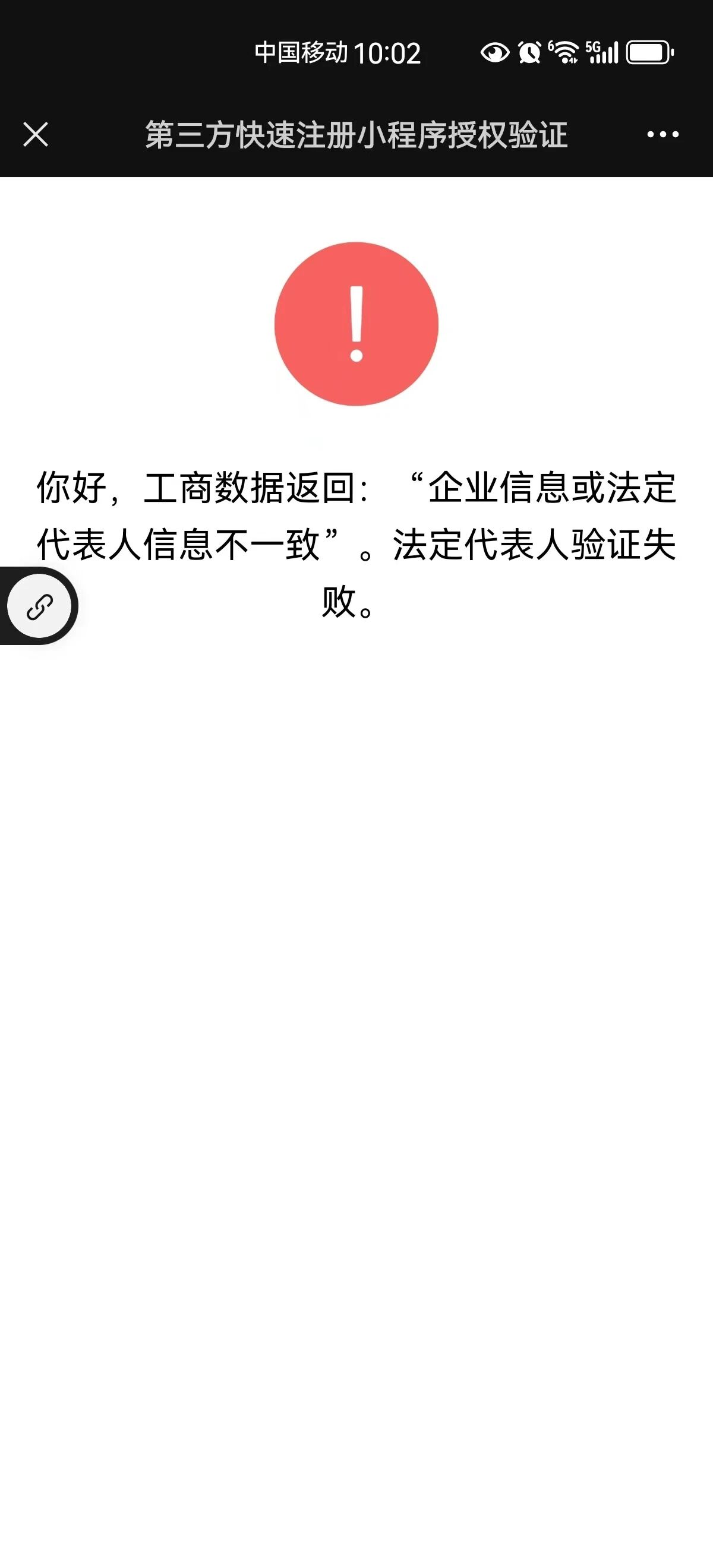 复现场景:公司申请开通小程序,提示“企业法定代表人姓名不一致”,公司是2024-4-17注册的,是不是信息还没更新,麻烦管理员手动更新一下数据吧!