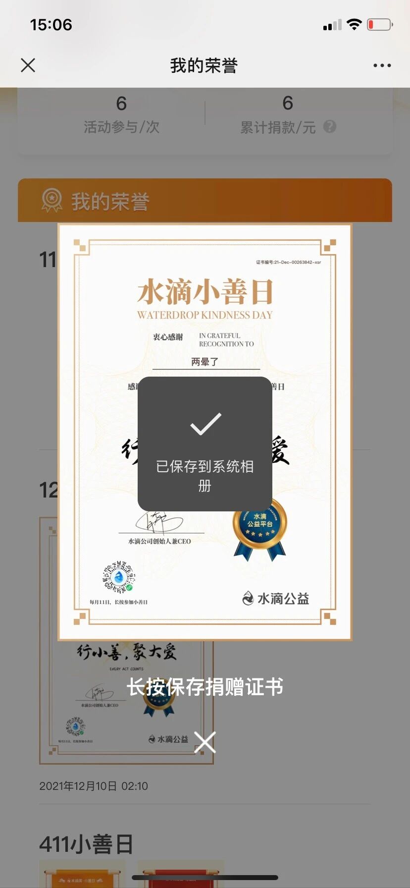 H5没有办法监听长按保存图片的事件。所以H5开发方也不能知道用户是否真的保存了。
