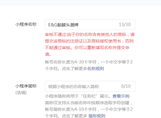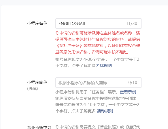 填写店铺名称的时候公司商标“ENGILD&GAILY”无法使用,上交商标证明材料的通道没有,但是“ENGILD&GAIL”少了一个“Y”就会给我开放商标材料注册通道,但是公司的商标注册证是ENGILD&GAILY“的全称,又注册失败,请问是为什么我用不了本公司的商标来注册公司的名称?