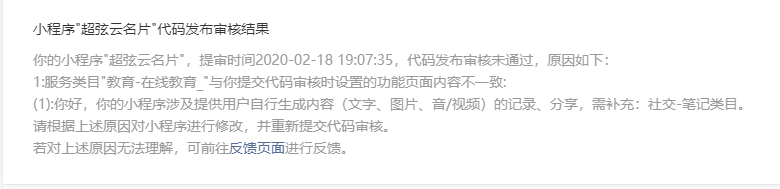 你好,经核实,你的小程序涉及提供用户自行生成内容的发布/分享/交流服务,请补充选择:社交-社区/论坛类目。