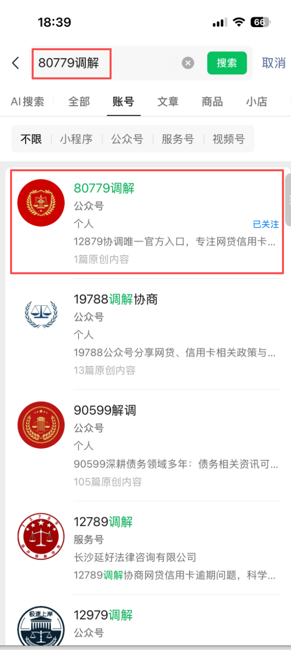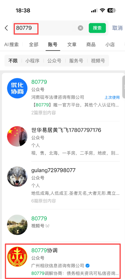 如图,为什么我的公众号无法通过图1中的数字搜索到,而图1中80779协调却可以,图2:只能通过输入完整公众号名称才能显示,图3:公众号无任何违规记录