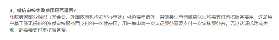 微信认证费用为第三方审核服务费,无论认证成功或者失败,均会收取费用,并不会退还。
