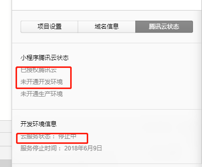 小程序开发显示腾讯云状态是停止中,点重启或者恢复开发环境显示errcode:-80080