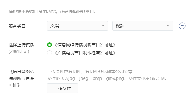 我们这是一个电商类的小程序,主要功能是售卖好玩有趣的商品,视频只是展示商品的一种形式,且不会涉及到用户自产内容、上传视频。我们根据审核提示查看了视频类目,这个类目要求必需上传《信息网络传播视听节目许可证》或《广播电视节目制作经营许可证》,可卖商品跟节目完全无关联,难道所有的电商平台想通过视频来做商品展示都需要这些证件吗?望官方仔细审查,非常感谢!