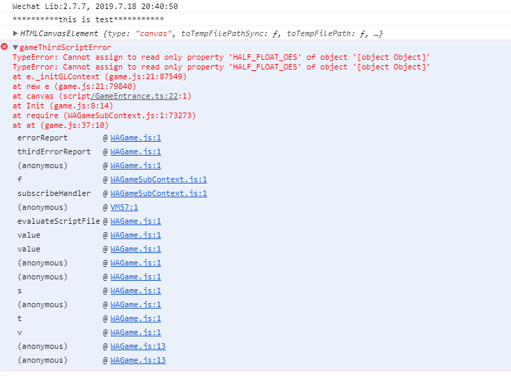 我在使用babylon.js开发微信小游戏时,在ios环境下(亲测ipad)是正常显示没有问题的,(另问下,微信是不是只支持webgl1啊),但在android下会有问题,无法正常显示。我只是简单调用了下new Babylon.engine这句。就报错了。************this is test*************是调用new Babylon.engine之的输出调试信息。下面是输出canvas信息。接着就new Babylon.engine,就报错了。机型 华为荣耀 v8 android8.0 babylon.js版本 4.03