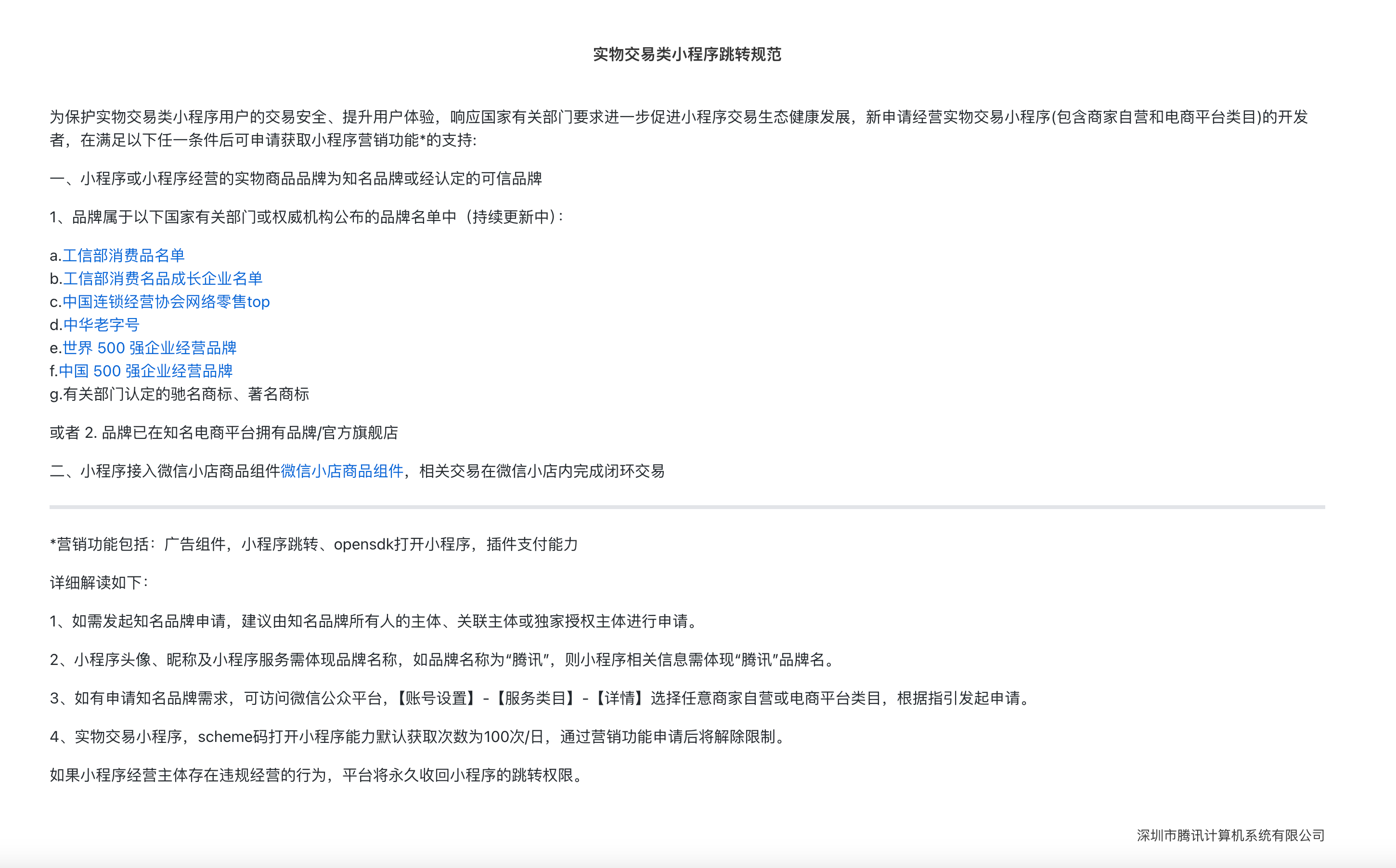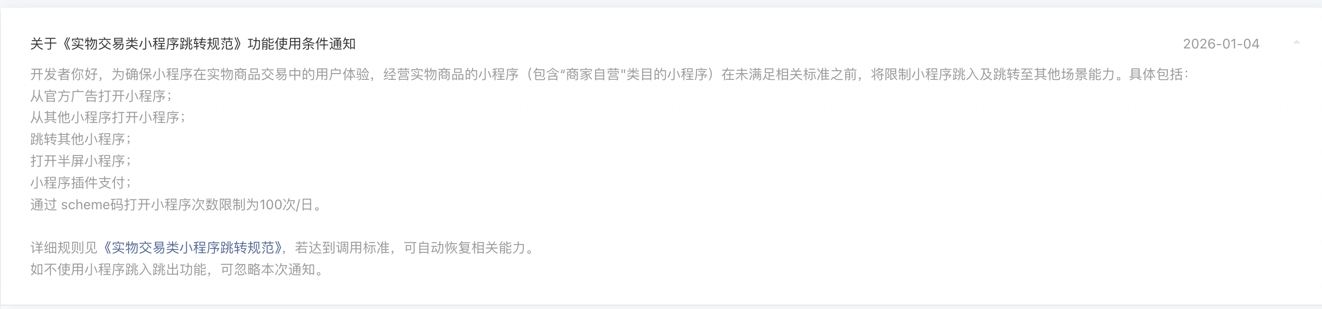 若为实物类小程序,商家可按照小程序站内信跳转公告进行恢复跳转功能。若还有其他疑问商家可在该路径进行咨询下哈,路径:小程序管理后台https://mp.weixin.qq.com/ 支付与交易-订单管理-发货信息录入/订单信息录入-【实物电商类小程序】旁边的问号-平台客服咨询。