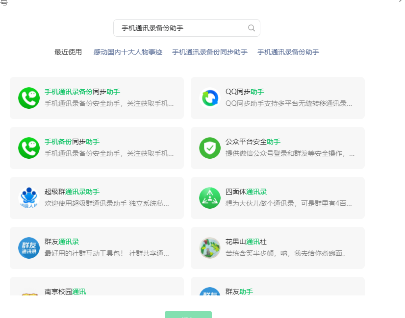 让别人搜索公众号名称“手机通讯录备份助手”,但是在搜一搜那里检索不出来,以前是正常的,帮忙看一下是什么原因,没有提示违规 搜全名应该都显示在前面 现在根本看不到 麻烦解决下 谢谢