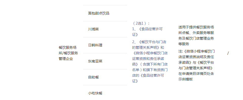 公司做了需要做一个多商家小程序,有餐饮行业线下实体店、旅游行业等多行业请问要选择类目,并提供什么资质。