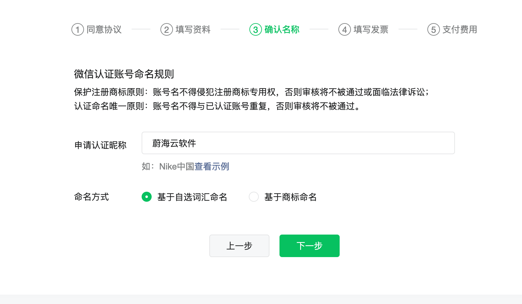 在企业的小程序认证过程中,在确认名称的时候给的实例和描述不清晰,用户以为是主体的简称之类的,结果认证完后直接把小程序名字改了...