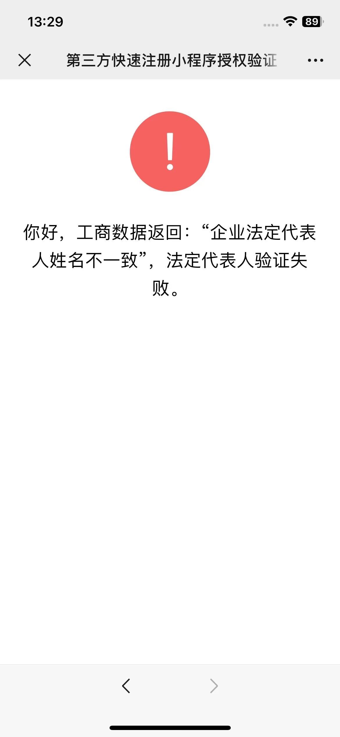 国家企业信用信息公示系统内可以查询到,一直提示企业信息或法定代表人信息不一致