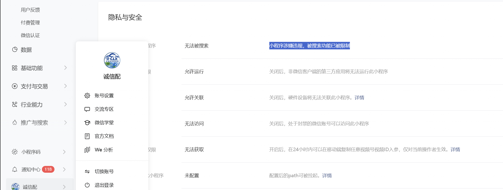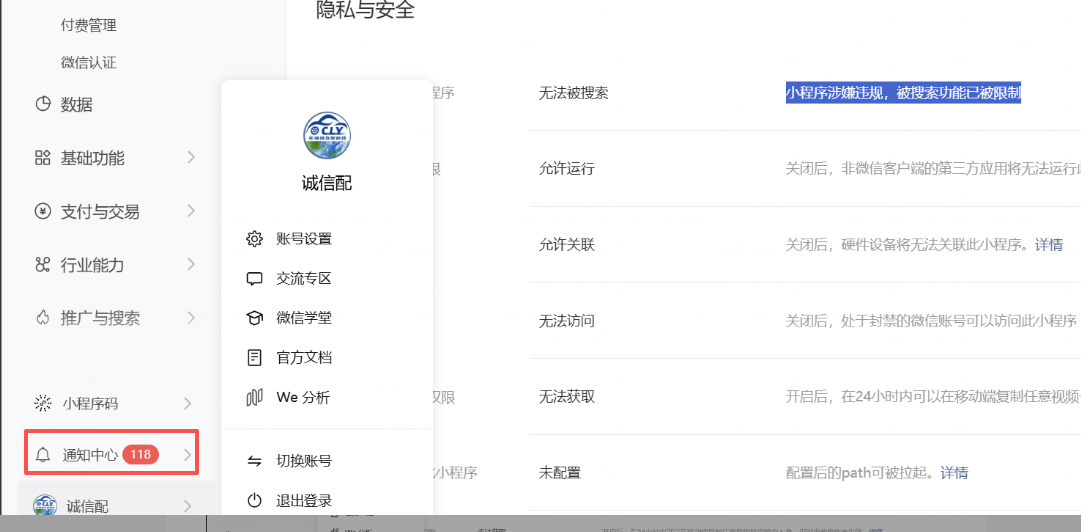 小程序涉嫌违规,被搜索功能已被限制