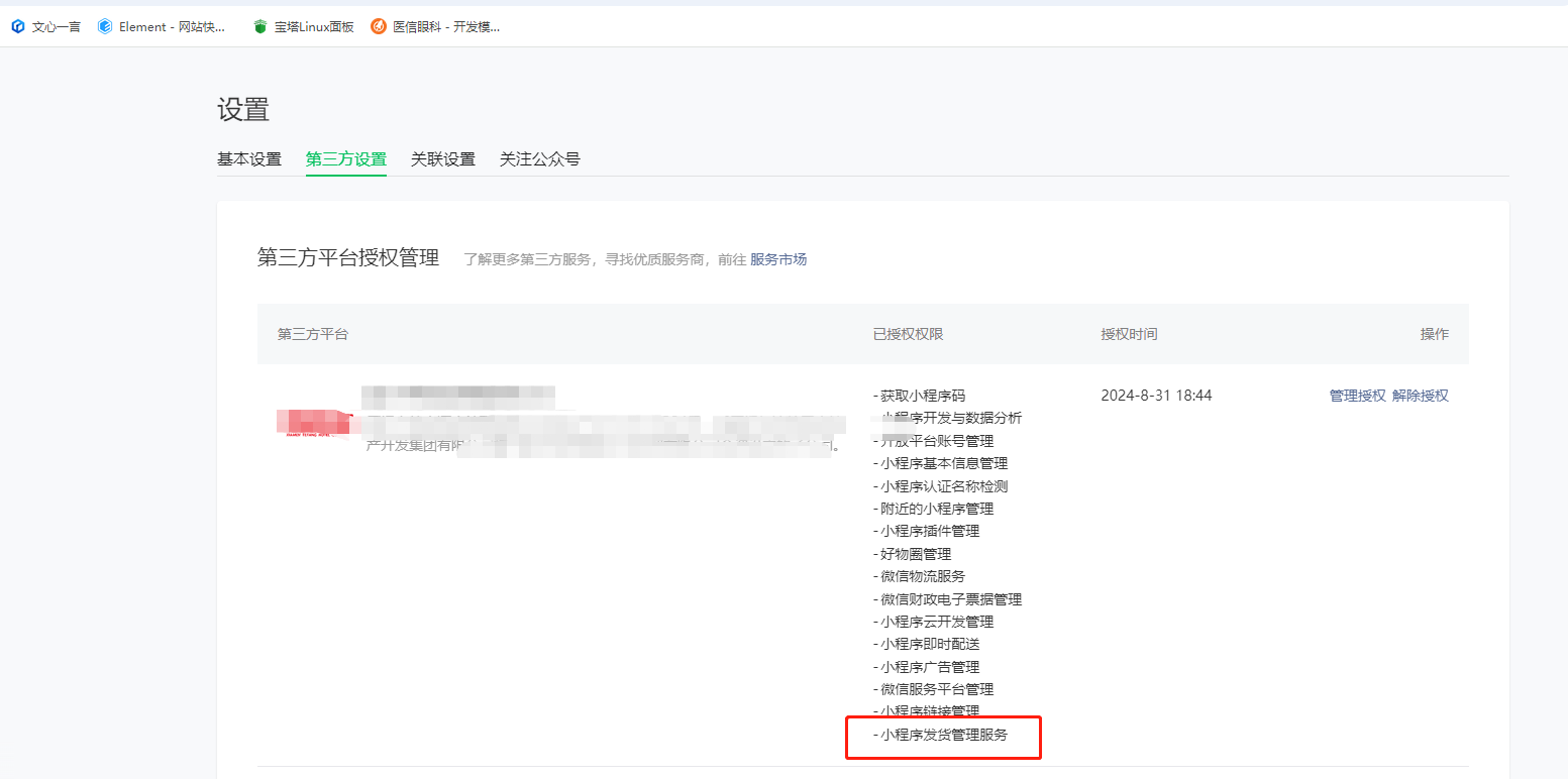 调用https://api.weixin.qq.com/wxa/sec/order/upload_shipping_info?access_token=ACCESS_TOKEN 一直提示api unauthorized rid: 66d30db4-6320932a-162e8600,微信开放平台已经授权了142权限集,小程序端也重新授权了,调用接口还一直提示未授权