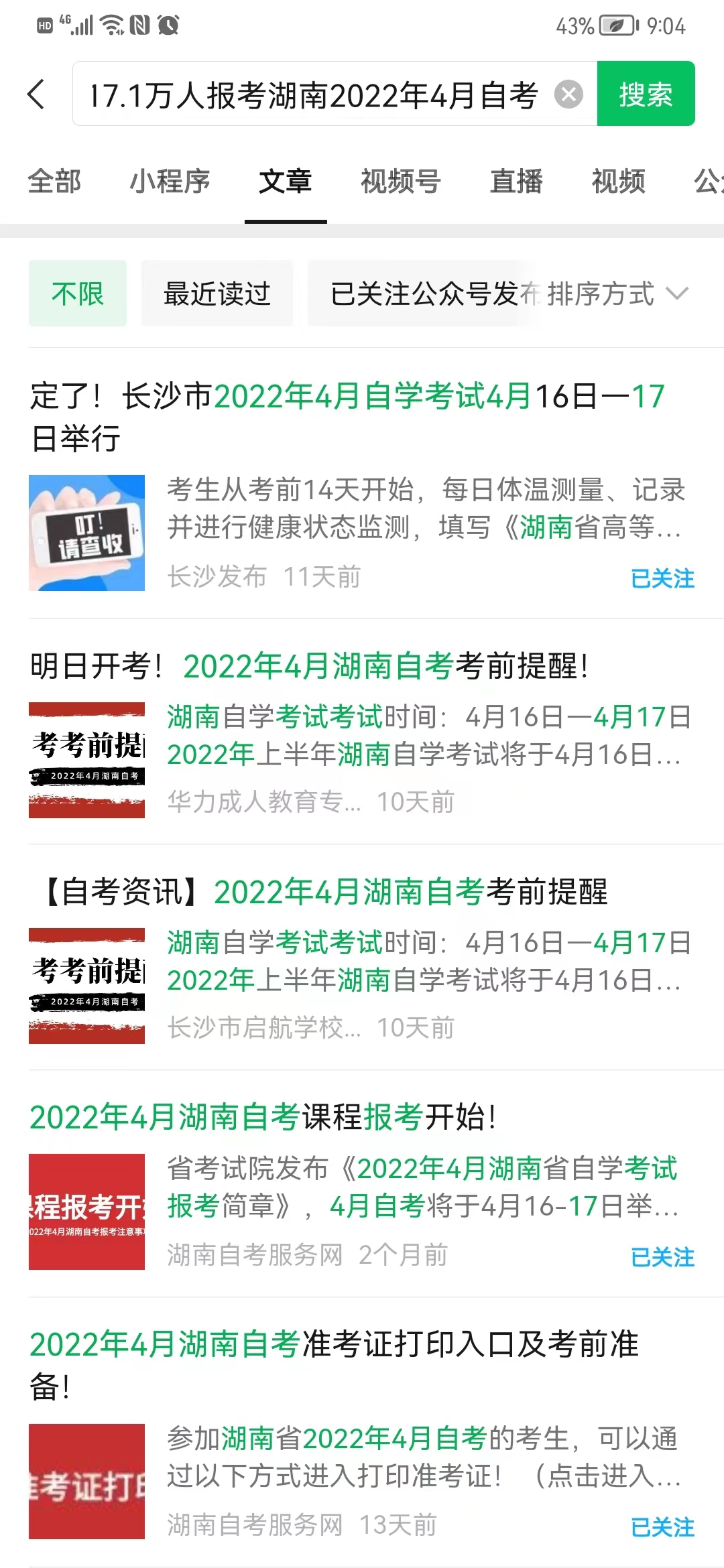 14.文章标题:17.1万人报考湖南2022年4月自考