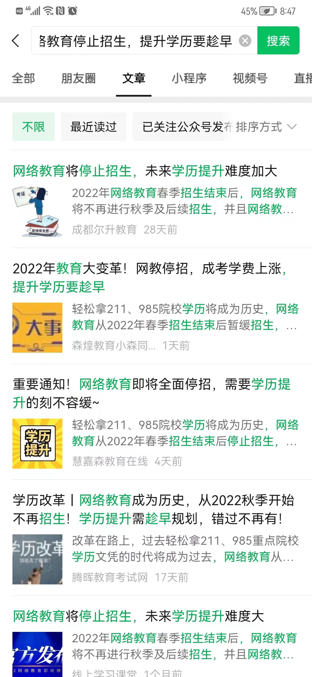 9.文章标题:【热点】网络教育停止招生,提升学历要趁早