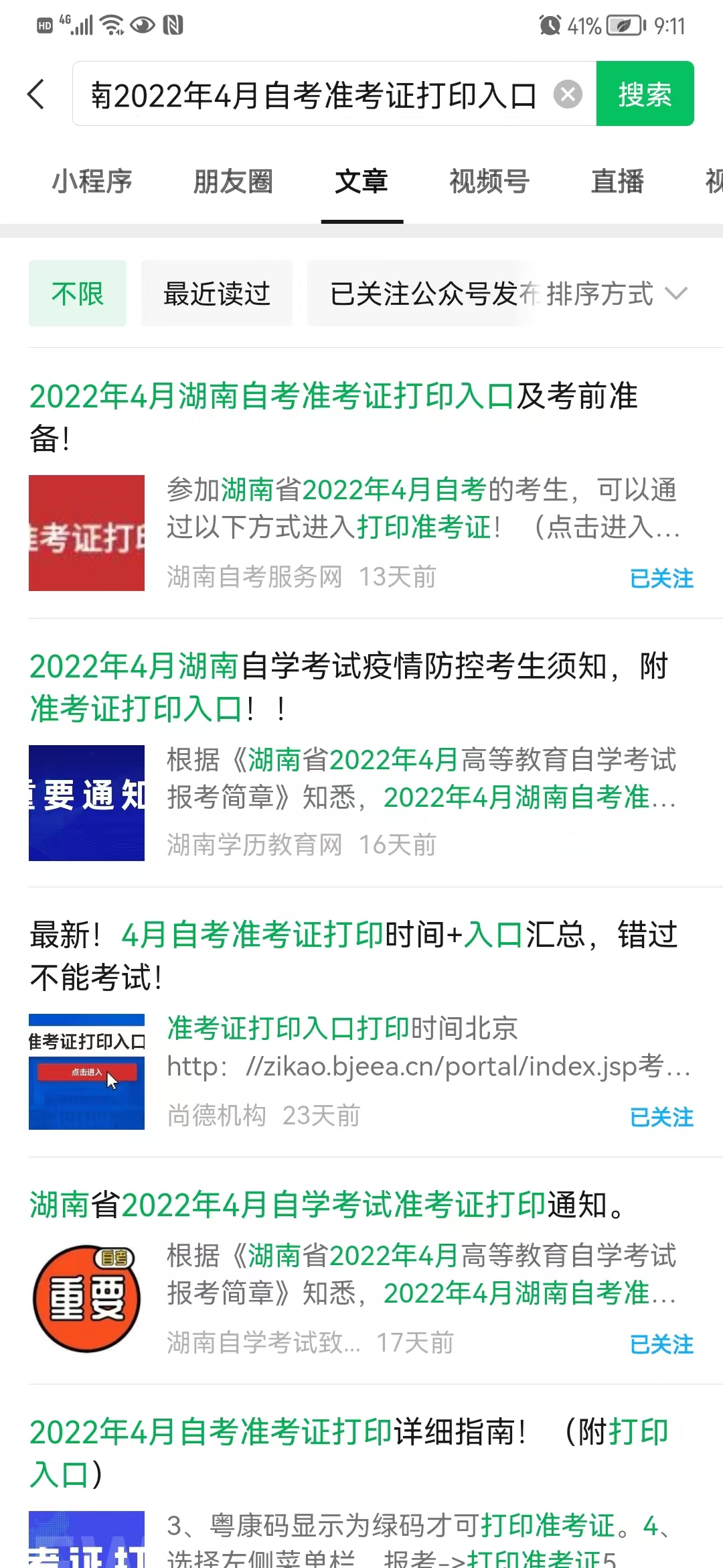 17.文章标题:湖南2022年4月自考准考证打印入口
