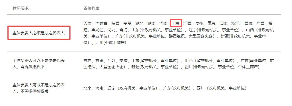 您好,请问上海地区微信小程序备案,需要填写主体负责人,上海是必须填写法人吗?1.可以授权给其他人吗?2.如果必须法人,后续他是否还要来帮忙做人脸识别认证?