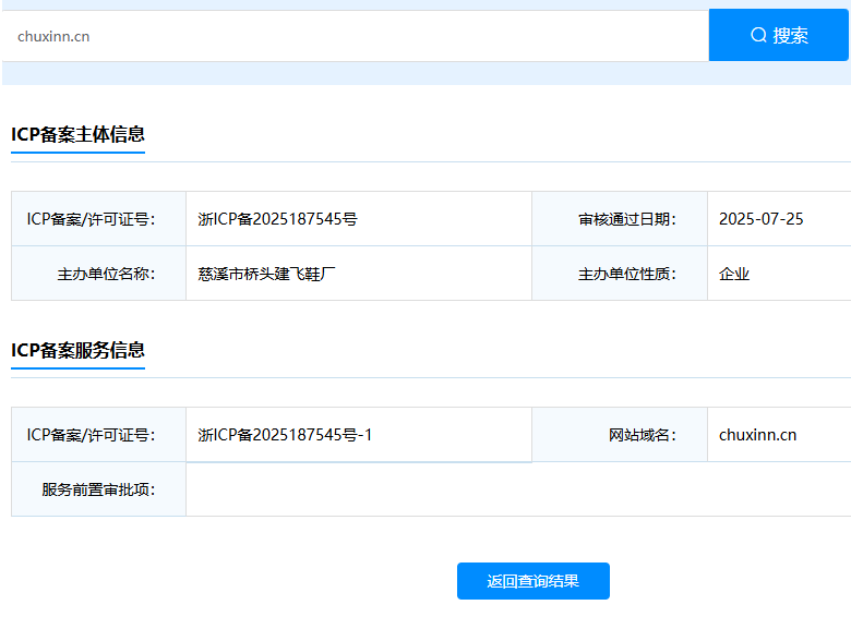 备案主办单位名称:慈溪市桥头建飞鞋厂