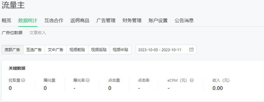公众号流量主可进入流量主页面【数据统计】,查看曝光量、点击量、点击率等广告关键数据。