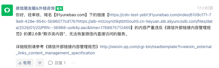 你好,已按照提示禁用https://cdn-test-yebf.91yunebao.com服务,需要再次审核