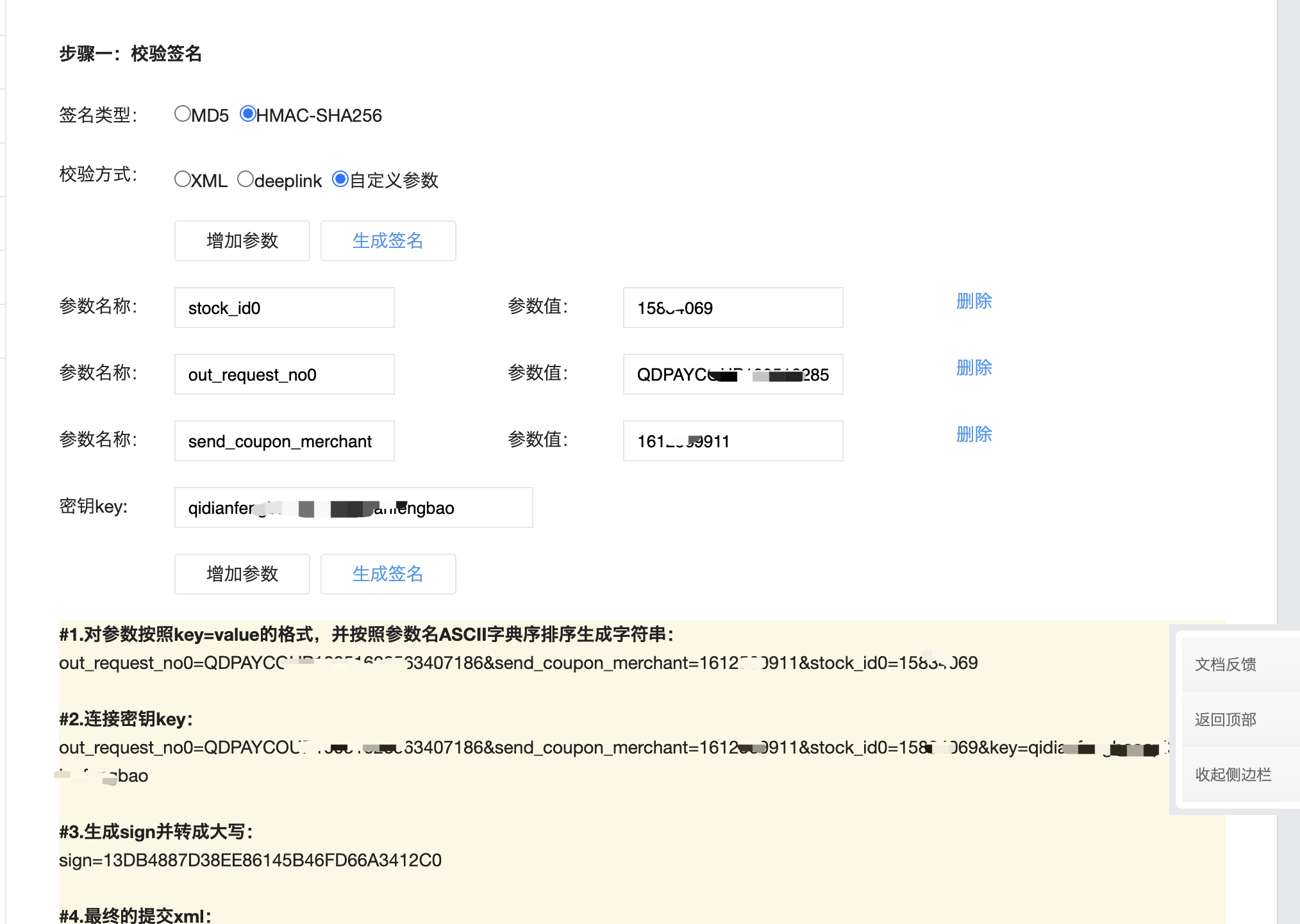 3、确认接口实际的请求参数与生成签名原串的参数一致,不能增加或缺少参数(可通过打印签名原串进行排查)