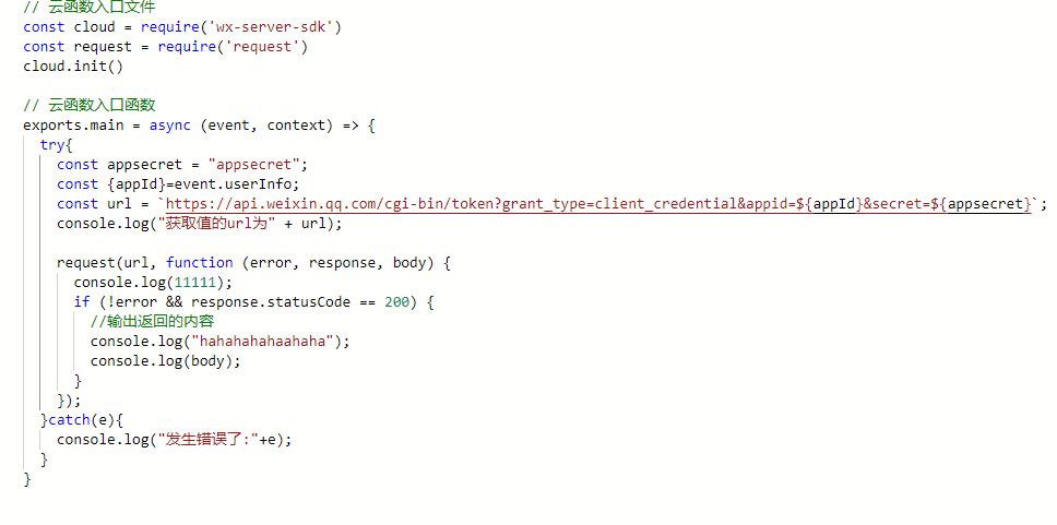 说简单点就是责怎么在云函数中发送请求出去呢,我用了request,好像请求没发出去。
