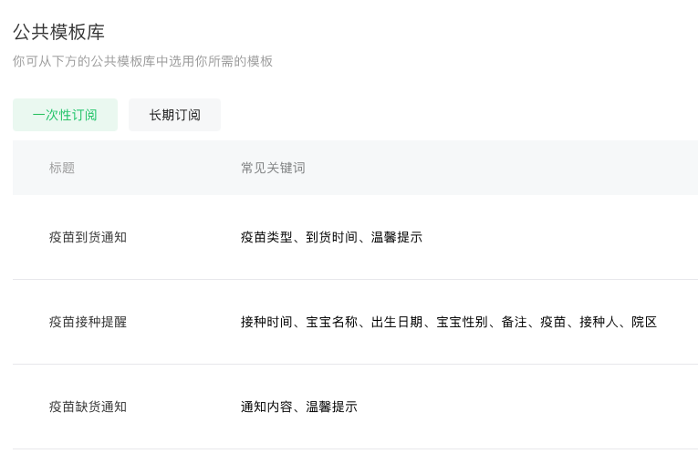 公众号订阅消息 医院类目的疫苗到苗通知不能申请长期订阅吗? 不是医疗类的都是可以长期订阅吗