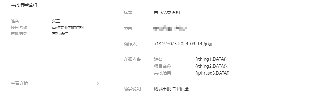 66e53b5a-2af1a24f-08f4dffa日志查看的JSON是:{"template_id":"92iLimpU4rP-42XuViw0ArmPoJyfIUGsgDhOudJl6kY","page":"非必填, 请输入字符串, 例如'a'","touser":"oDg6X7XJtZqRa-rGowXwP_Vyu6dI","data":"{'thing1':{'value':'姓名'},'phrase3':{'value':'结果'},'thing2':{'value':'项目名称'}}","miniprogram_state":"developer","lang":"zh_CN"}