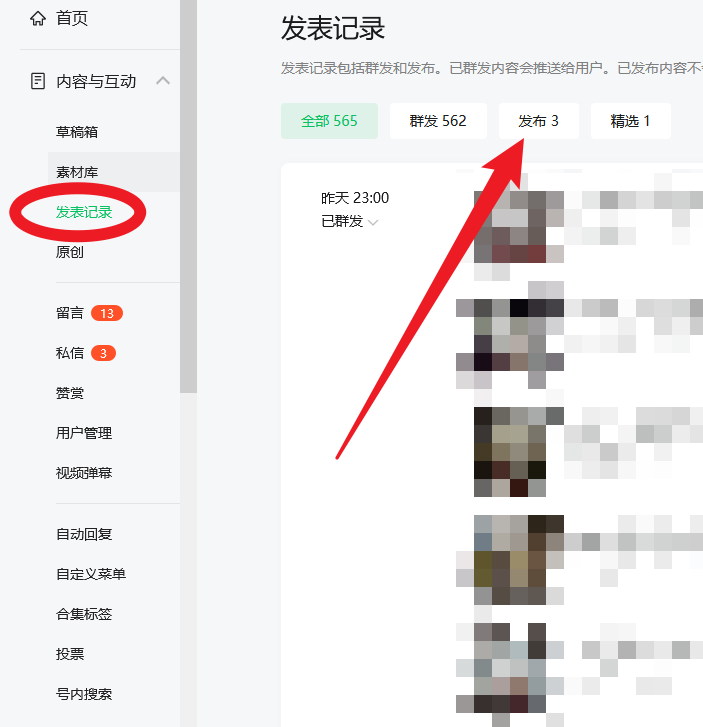 发布:不会主动推给粉丝,历史消息列表看不到,内容分析看不到数据。