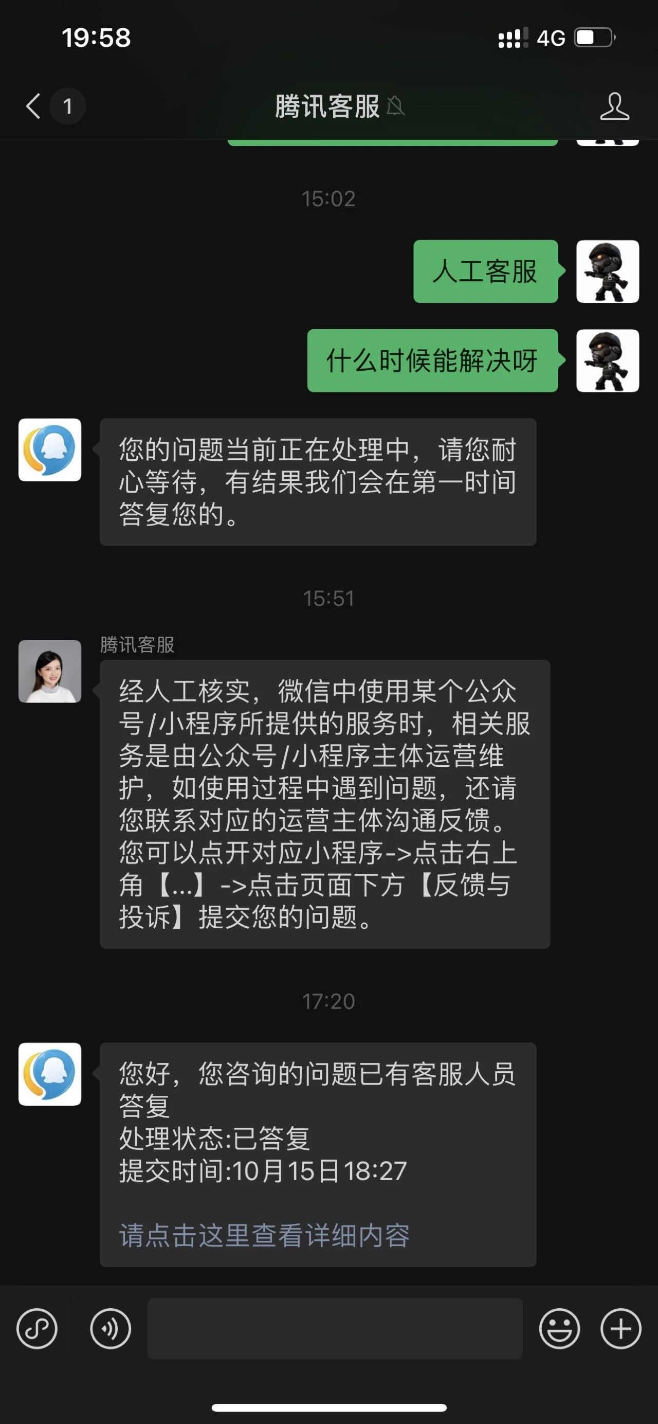 不知道是什么原因,15号的时候玩了一个小程序内的游戏,游戏内有广告激励可以领取奖励我都领取了之后第二天所有的小程序都无法获取广告了,咨询了小程序游戏客服,也咨询了微信客服,微信广告助手客服。都不了了之踢皮球敷衍了事