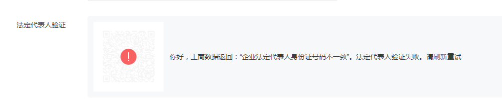 我正在注册小程序 在填写认证联系人的那一步骤法人扫码显示“企业信息或法定代表人信息不一致” 账号是:gh_2ec07e70998f 我们是个体工商户的营业执照