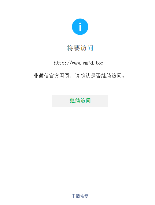 在微信打开网页www.ym7d.top提示非微信官方网页,请确认是否继续访问,已经备案了,并且也进行了申诉,但是还是提示非官方网页,这要怎么解决?