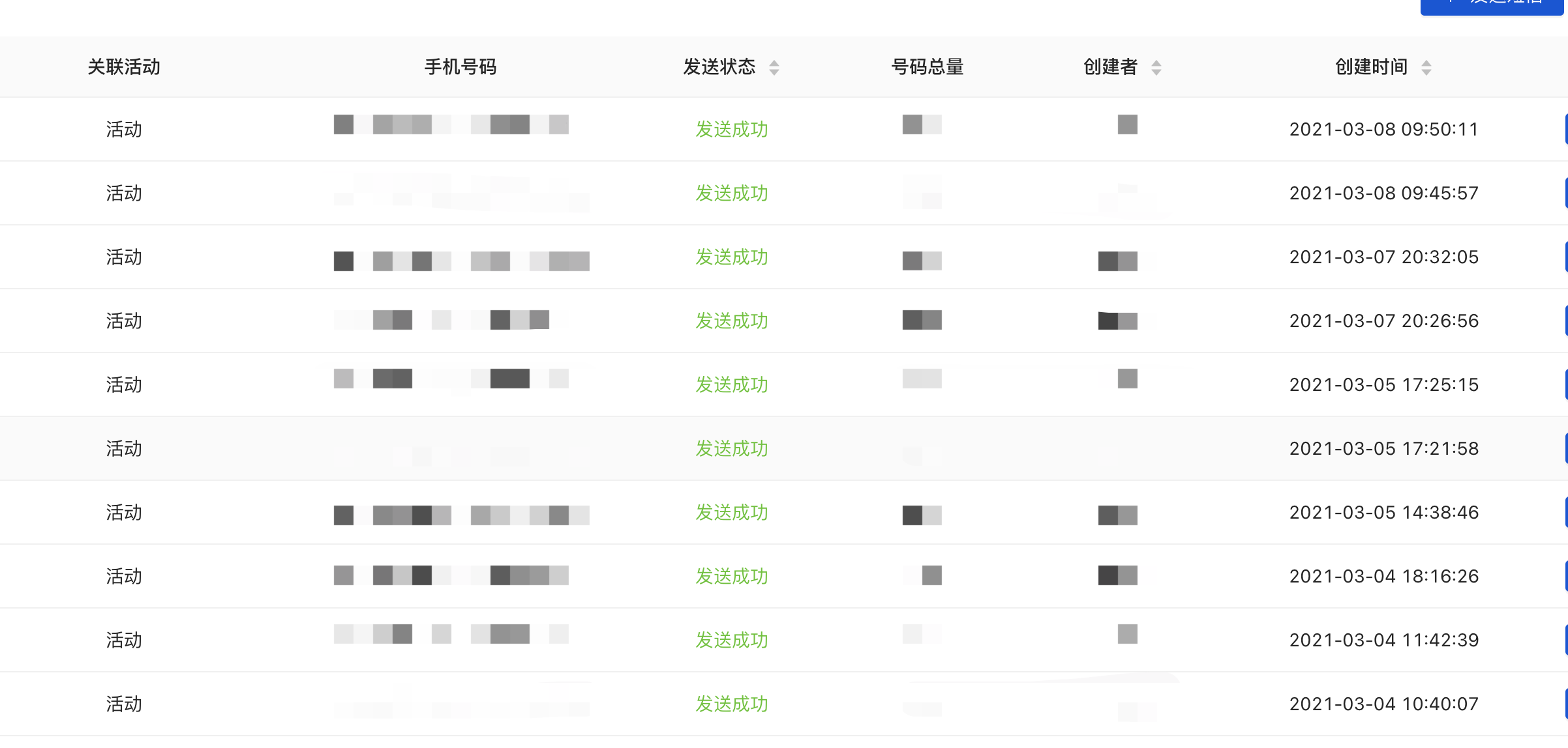短信发送很多条,但是进入短信统计分析无论是活动下发短信总是还是访问人数都是空