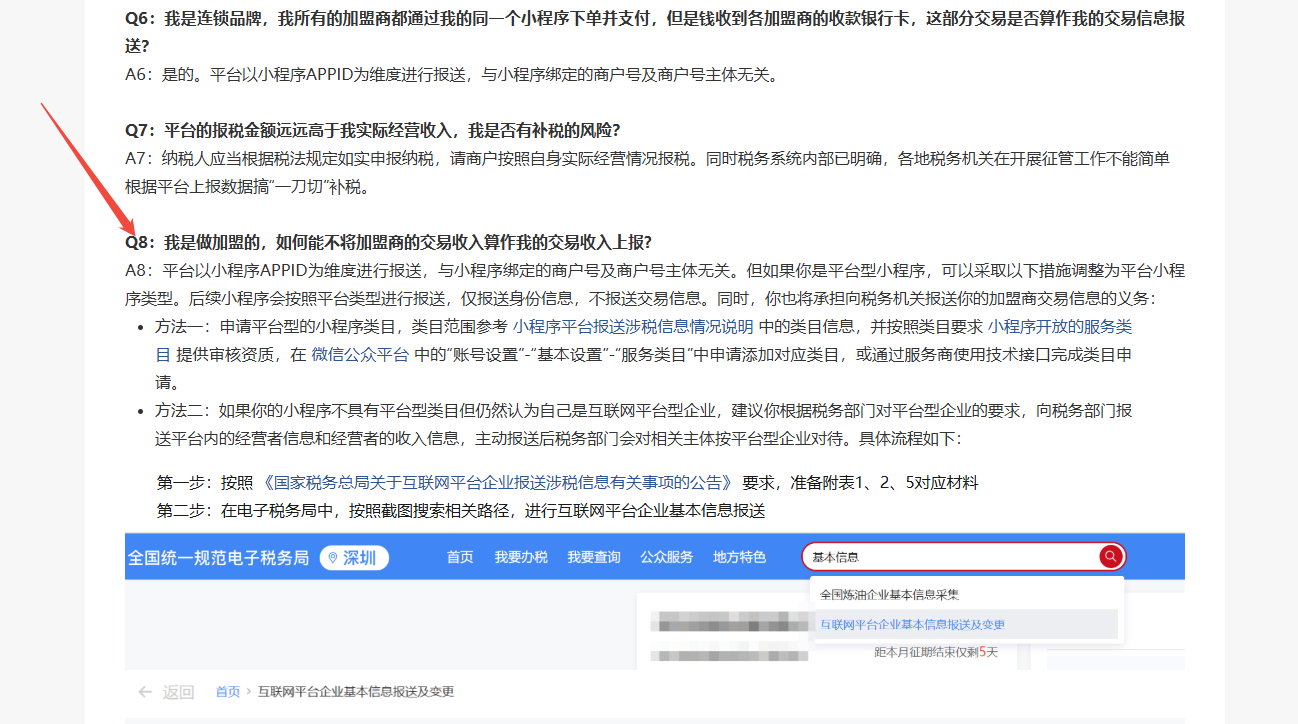 4、平台以小程序APPID为维度进行报送,与小程序绑定的商户号及商户号主体无关。如你的小程序存在和其它主体联合运营的情况,需要自行向主管税务机关说明情况或主动作为平台型企业报送平台内其它经营者的身份信息和收入信息。