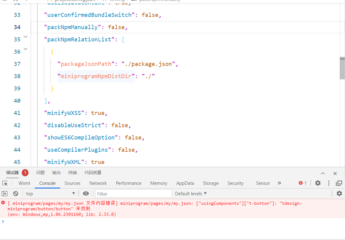 遇到了同样的问题,第一张图里改成下面就好了 "packNpmRelationList": [ { "packageJsonPath": "./package.json", "miniprogramNpmDistDir": "./miniprogram" } ]问题多的一大堆,本来组件的目录就是button/button,自己解析的时候非得在后边加个index目录,所以就报错说文件找不到
