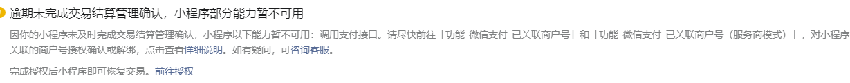 同时小程序通知提示我们需要申请B2B支付,目前也开通了B2B商户号了绑定了授权了,但是为什么仍然是被限制了支付能力呢?