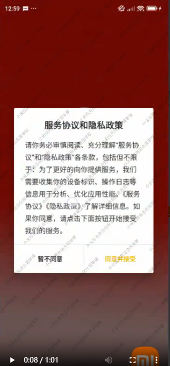 小米市场审核的时候被拒绝了,提示这个隐私窗口内容不完整,不是完整的隐私政策。