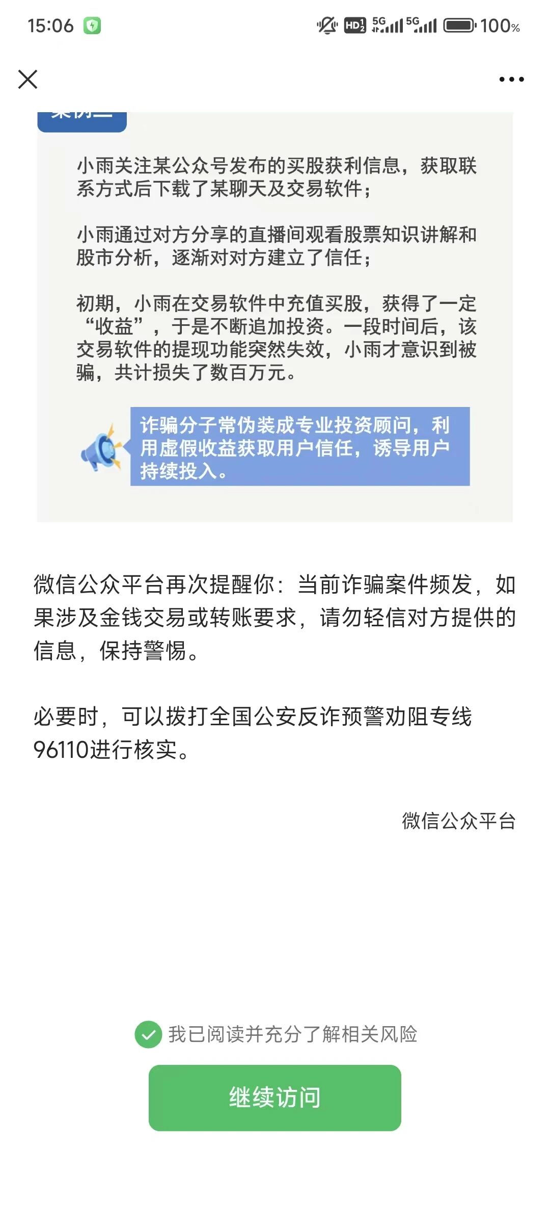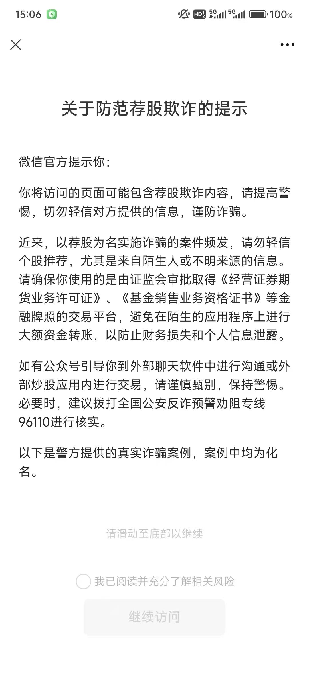 总提示你正在查看的内容可能存在证券欺诈风险,需阅读相关案例后才可继续访问