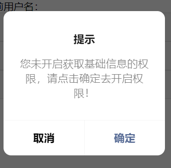 content: '您未开启获取基础信息的权限,请点击确定去开启权限!',