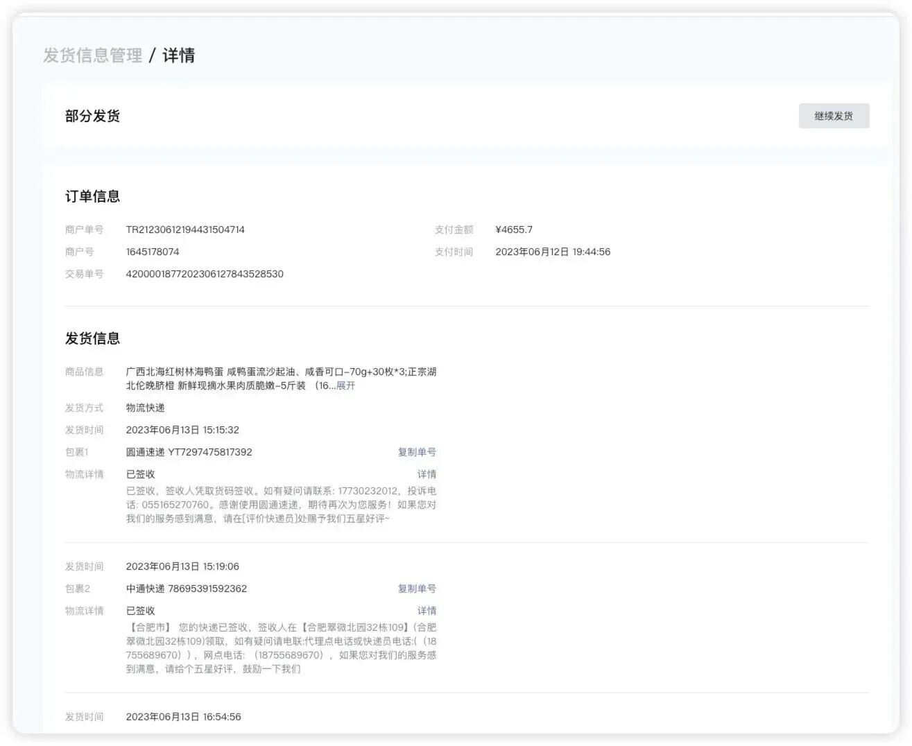 小程序后台发货信息管理bug,该订单超出了10个物流单号,导致订单完全被卡住,无法处理,也无法发货;
