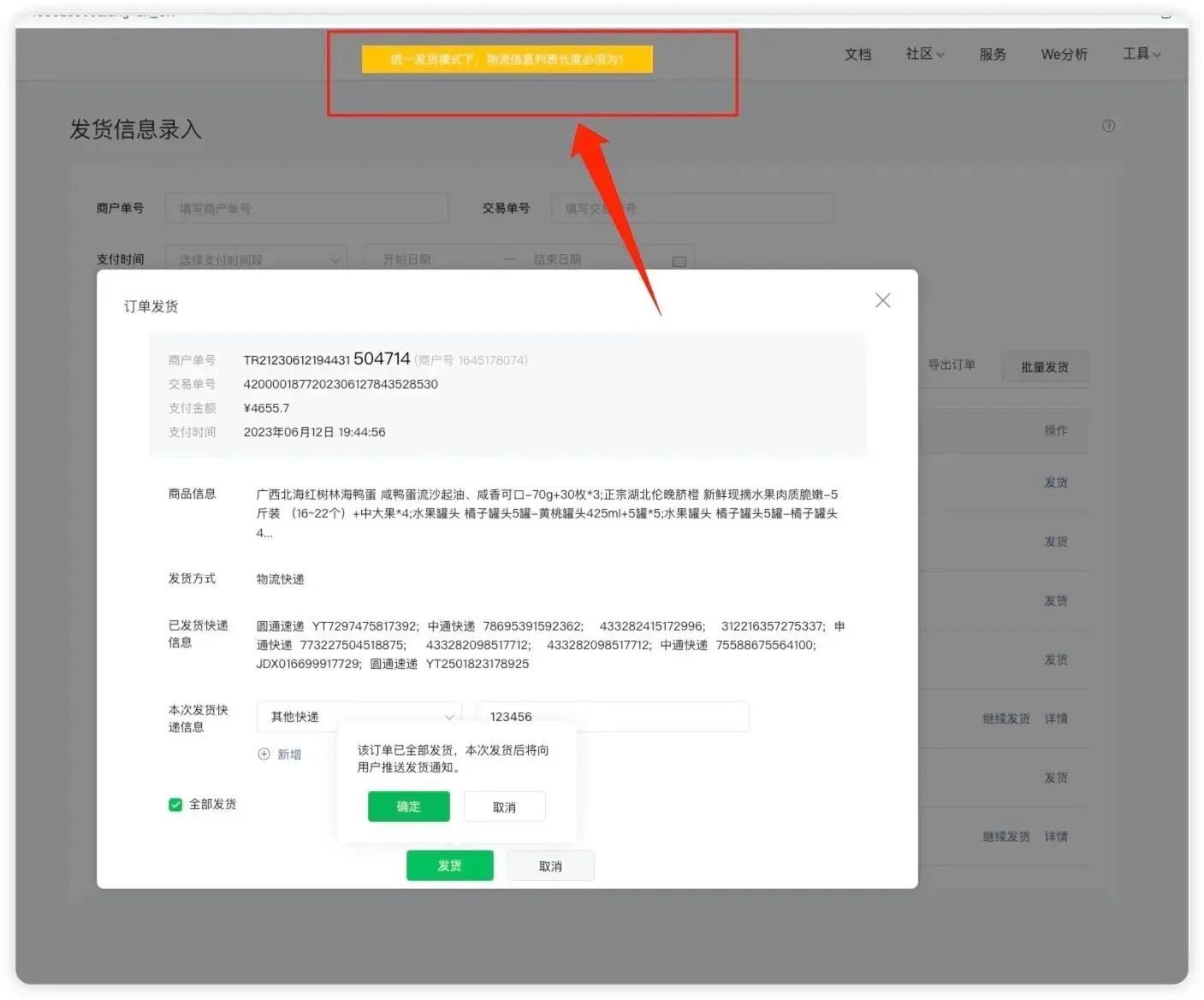 上车个订单要求必须要到小程序后台发货,OK,我们发。人家一个订单买了13个商品,你还能不让人家买吗?你们限制10个物流单号,OK,我们接受。但是直接把订单卡住,是什么情况?