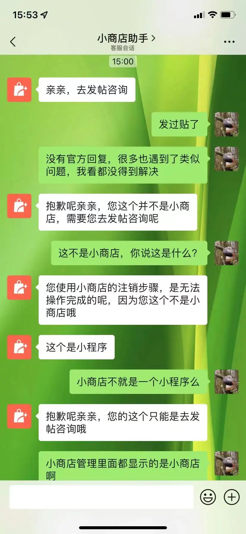 那么我想请问官方,我现在实名反馈,这个小商店也好,小程序也罢,到底能不能注销,如果可以,流程是什么?或者能否协助完成注销?