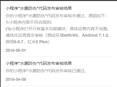 5月8号还能通过审核 后面5月16号一直拒绝,到现在都拒绝了4次了,该下架的商品都下架了, 都恢复到5.8号之前部署的商品,我都不知道该怎么做了.我都要崩溃了. 完全不知道错在哪里, 写的代码之前发布都没问题,后面审核不过真想不明白!!!!!!!!