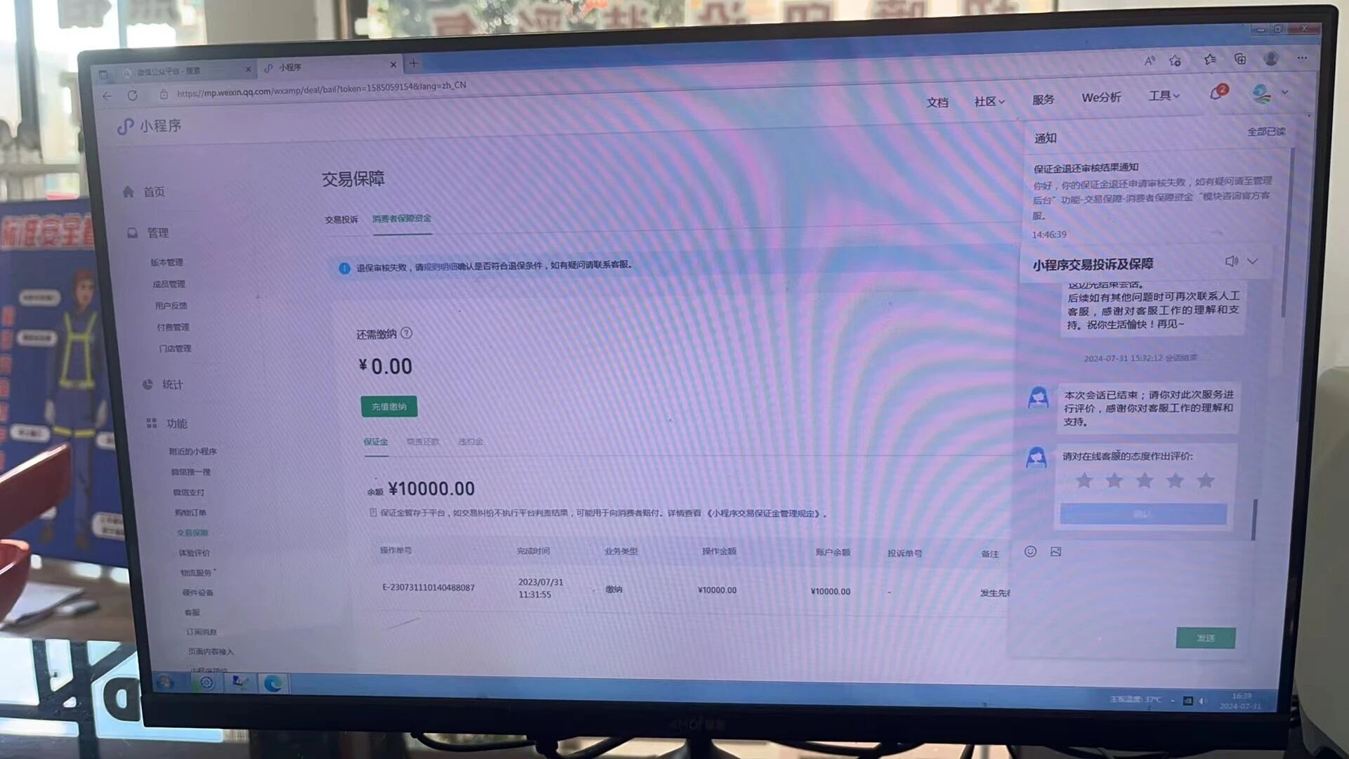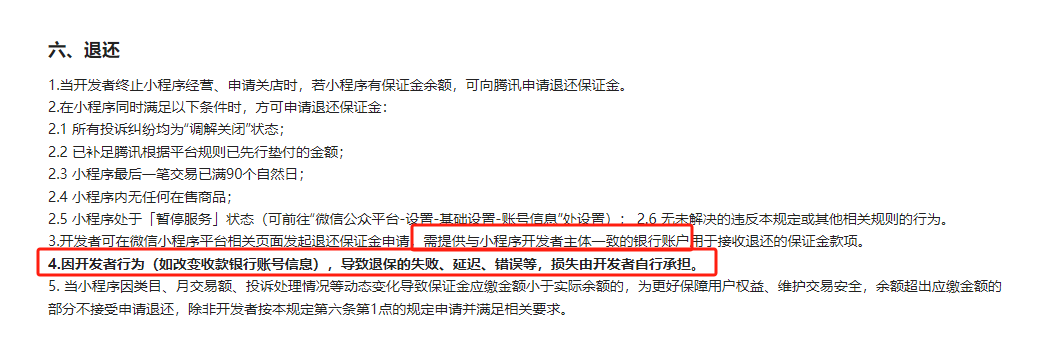 2、退还保证金,是生意经营不善,不到万不得已才需要关闭店铺,对公银行都注销了,哪来的与小程序主体一致的银行账号!咨询无门,投诉无门,微信什么时候能把最后一根稻草还给我们这些普通商家呢!!!