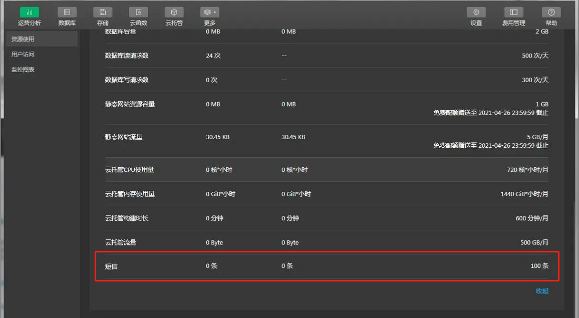 errCode: -501007, errMsg: "openapi.cloudbase.sendSms:fail 配额不足