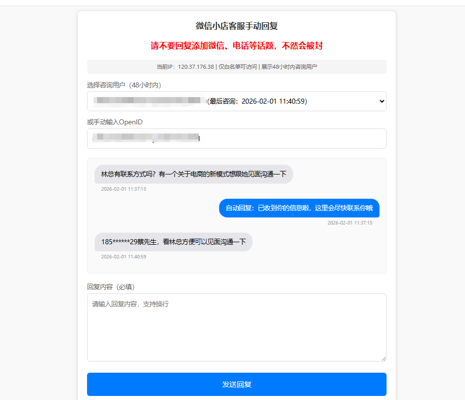 hey,我们使用微信小店自己研发的微信客服的聊天工具,用户发送了手机号请问我们怎么脱敏呢?