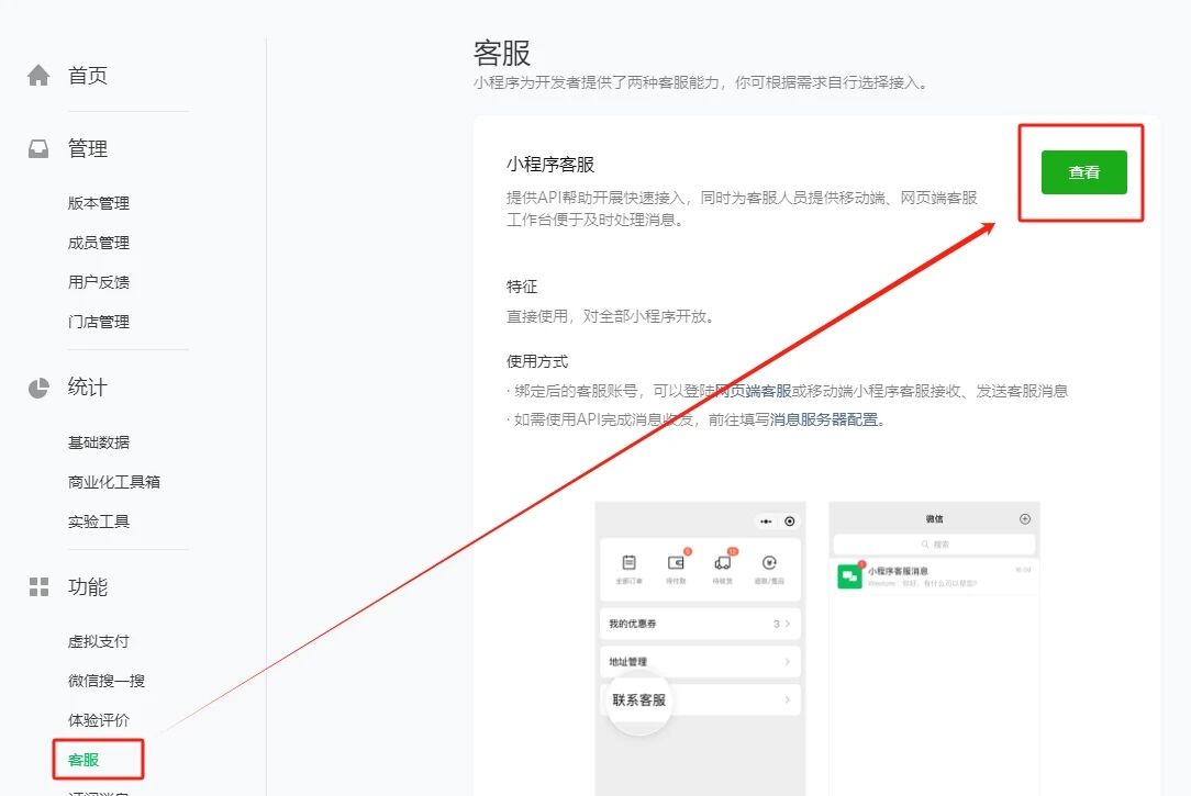 不需要接入,上线之后就会有客服功能,玩家联系客服管理员的微信会收到消息。