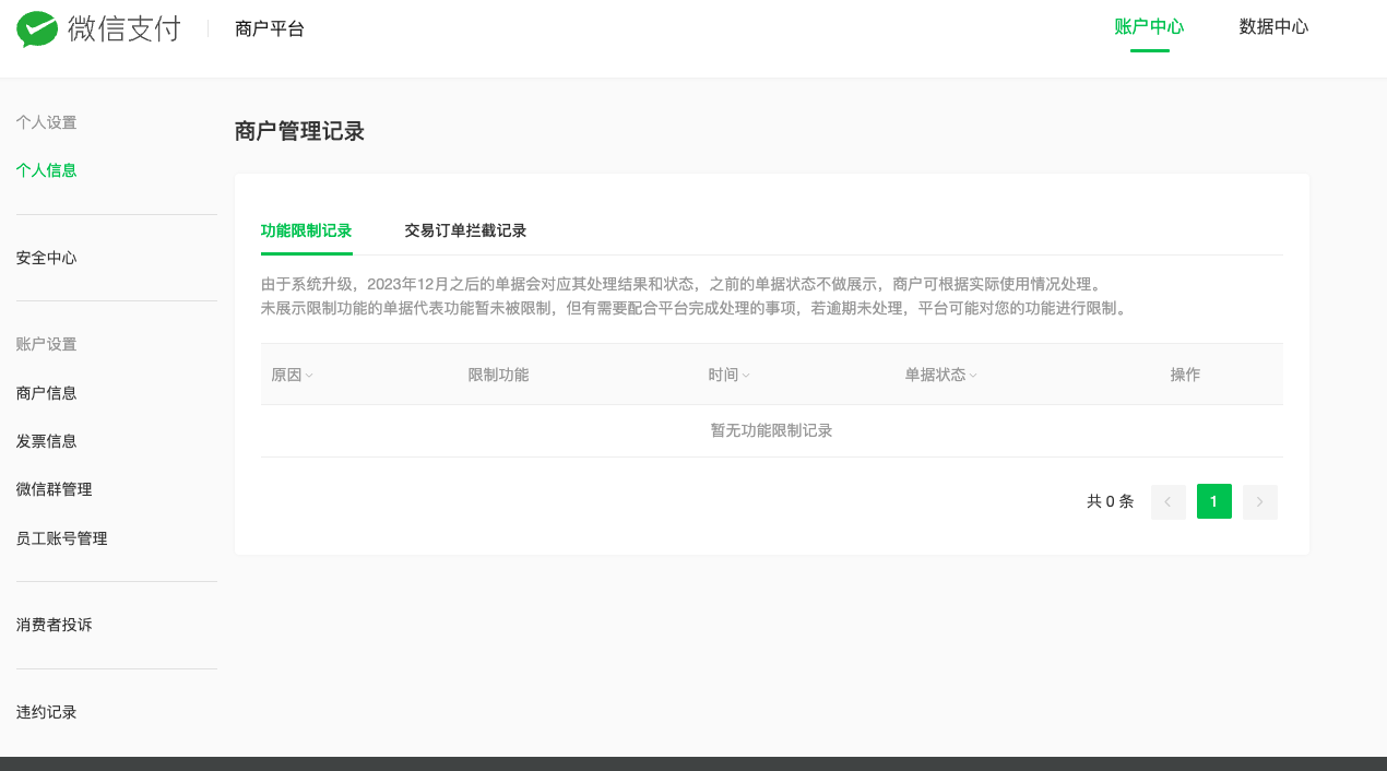 同时我们检查了主体下所有的微信支付商户号,都没有支付限制