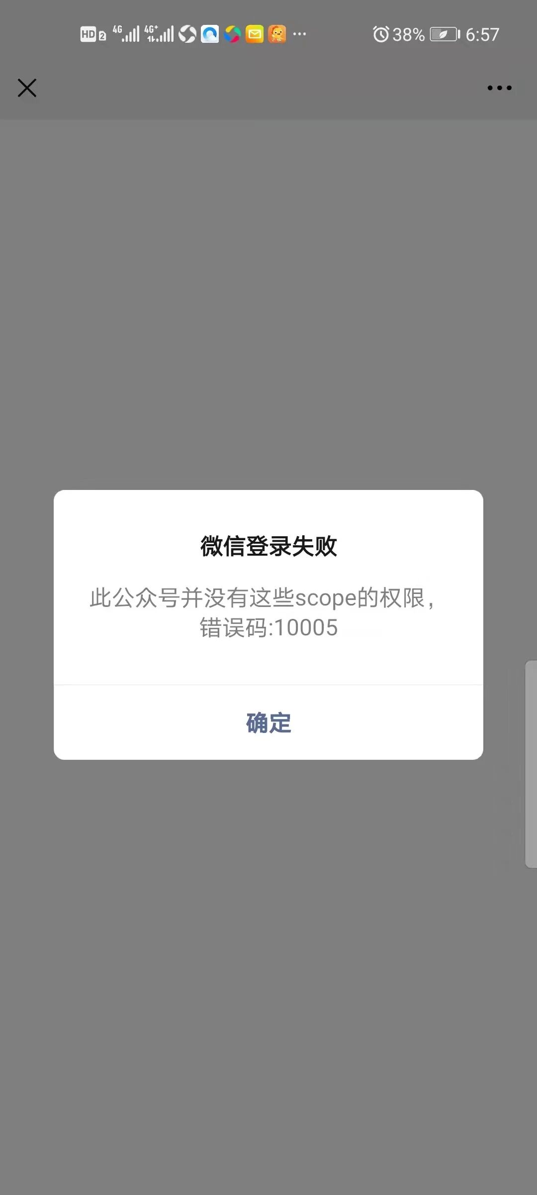 请问微信公号突然出现微信登陆失败:此公众号没有这些scope权限,错误码10005,怎么解决?