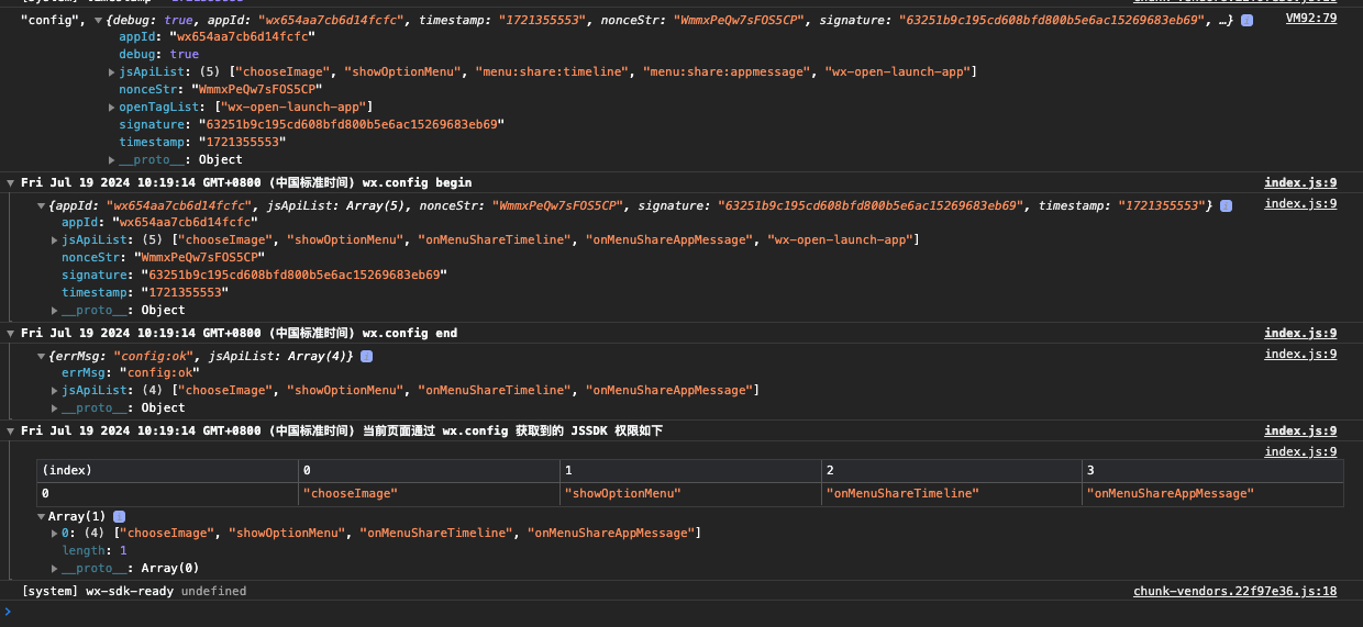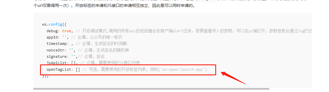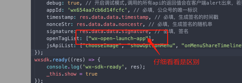 在最开始”config“中还存在 openTagList 字段 但在下方 wx-sdk-ready上没有打印出关于openTagList 的table打印
