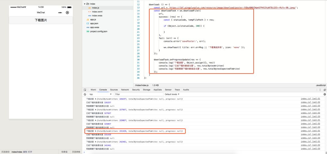 下载图片进度回调中 后面两个参数一致是空值